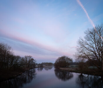 Diese Stelle kennen eigentlich nur ein paar Hundebesitzer. Wir unterqueren die Brücke vom unteren Radweg, hier endet ein kleiner Nebenwasserarm und fangen an bei den Birken zu fotografieren. Der Stück ist recht klein, dahinter ist schon ein Bauernhof, aber sehr schön.