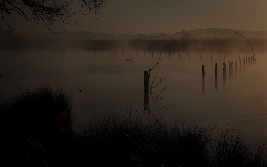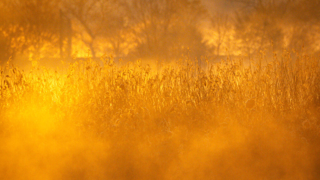 Frühjahr und Herbst, kalter Morgen, es liegt ein herrlicher Nebel über der Wiese und man kann das eine oder andere zivilisatorische Detail geschickt verbergen.