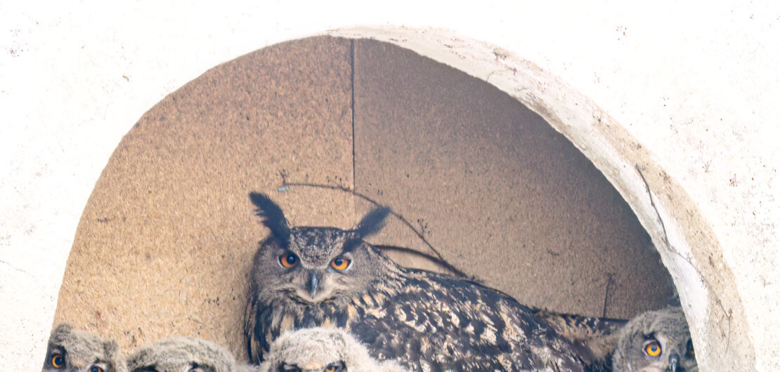 Uhus haben einen massigen Körper und einen auffällig dicken Kopf mit Federohren. Der Uhu ist ein Standvogel, der bevorzugt in reich strukturierten Landschaften jagt. Die Brutplätze finden sich vor allem in Felswänden und Steilhängen und in alten Greifvogelhorsten, seltener an Gebäuden oder auf dem Boden.