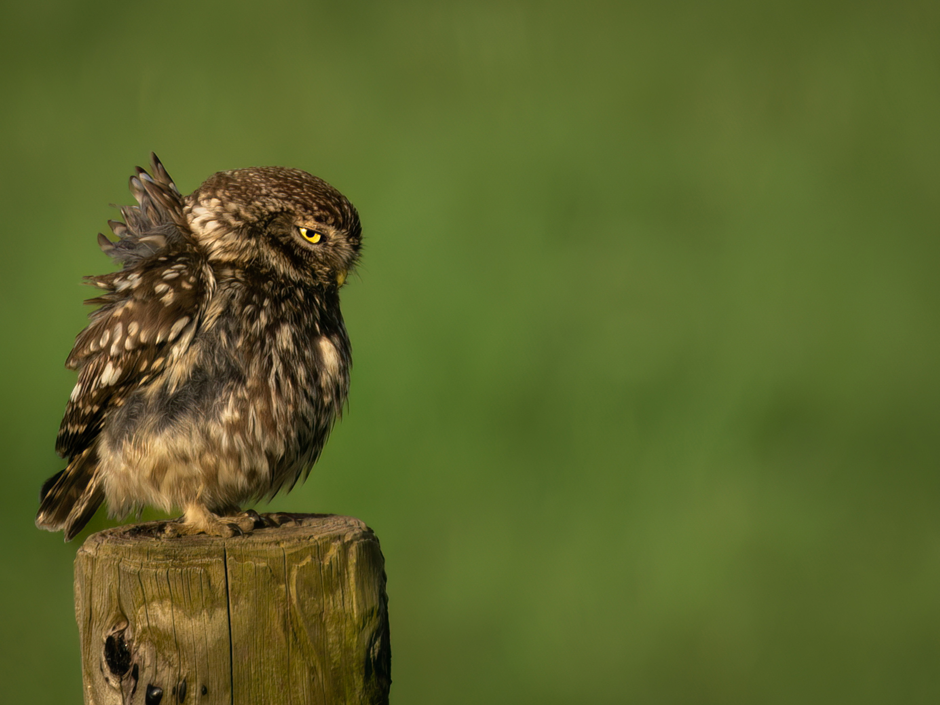 Einer unserer kleinsten Greifvögel, in der Luft schon oft gut zu erkennen durch sein "Rütteln" - das Stehen in der Luft.Der Waldkauz